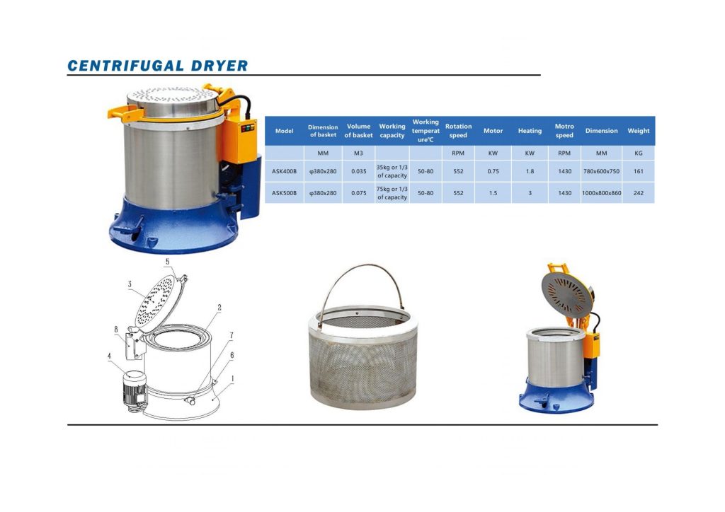 The Centrifugal Dryer is a specialized finishing machine that rapidly removes moisture from parts after wet finishing processes by using high‑speed rotation combined with hot air circulation. It places components in a perforated basket or drum, spins at high RPMs to throw off water via centrifugal force, and simultaneously blows heated air through the load to evaporate residual moisture and protect surfaces from stains or corrosion. The machine is suitable for small to medium‑sized components made of metal, plastic or ceramic, and is especially useful where delicate parts must be dried without tumble media contact. Built with stainless‑steel baskets, safety interlocks on the lid, and optional heating and speed controls, it ensures efficient, uniform drying. Ideal for finishing lines in automotive, aerospace, jigs & fixtures, and mass‑production environments.