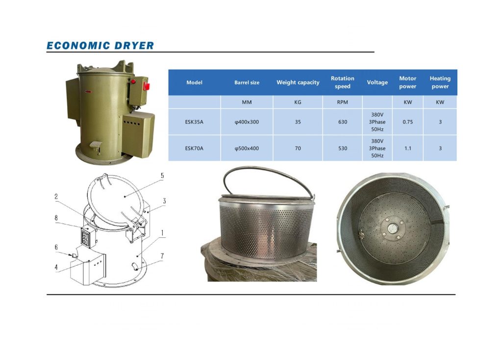 The Economic Dryer is a cost‑effective industrial machine designed to quickly dry parts or products after finishing or washing processes. It combines basic heating and air circulation with an efficient footprint and simplified controls, making it ideal for operations with budget constraints or limited space. This dryer minimizes operating costs by using low‑power fans, modest heating elements, and a durable build to reduce maintenance overhead. Its compact and straightforward design ensures ease of integration into existing production lines without major infrastructure changes. Suitable for small‑to‑medium size batches, it offers reliable drying performance for manufacturers seeking value‑based drying solutions.