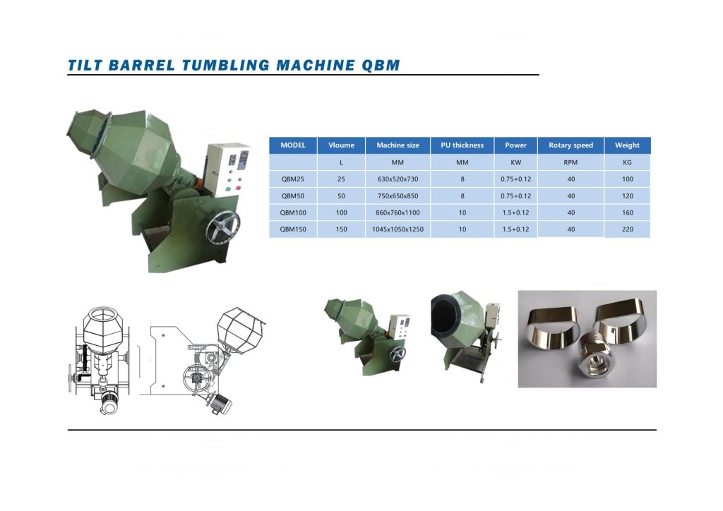 The Tilt Barrel Tumbling Machine QBM is a versatile finishing system designed for polishing, deburring, and smoothing a variety of components. It features a tilting barrel that allows easy loading and unloading of workpieces, reducing manual effort and improving efficiency. The QBM model provides gentle yet effective tumbling action, ensuring uniform surface treatment with minimal damage to delicate parts. Constructed with a durable barrel and robust drive system, it ensures long-lasting performance and consistent results. Ideal for industries such as metalworking, jewelry, and precision components, this machine delivers high-quality finishes with enhanced productivity.