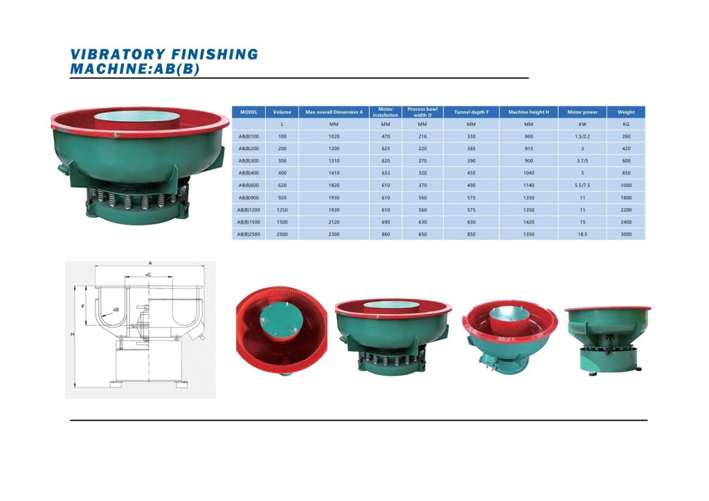 The Vibratory Finishing Machine AB(B) is a precision-engineered system designed for effective surface treatment of various components. It uses controlled vibrations to polish, deburr, and clean metal, plastic, or ceramic parts efficiently. The machine ensures uniform finishing with reduced processing time and minimal manual effort. Built with a robust and wear-resistant bowl, it delivers long-lasting performance. Ideal for mass production, the AB(B) model guarantees smooth, high-quality surfaces across industries.